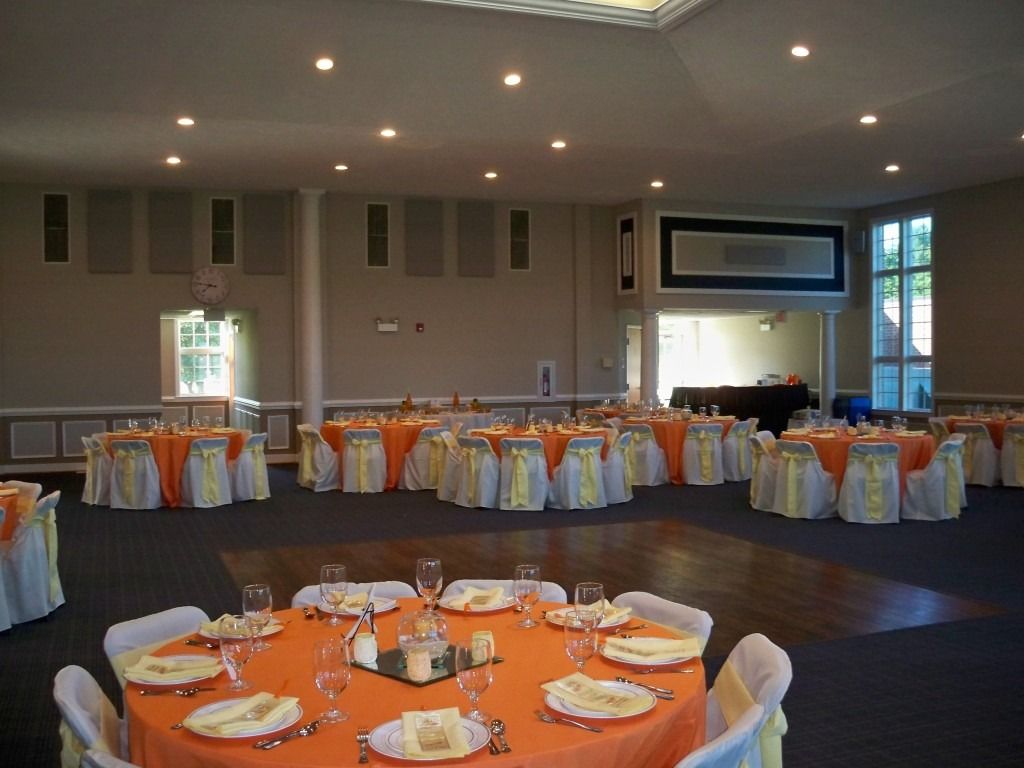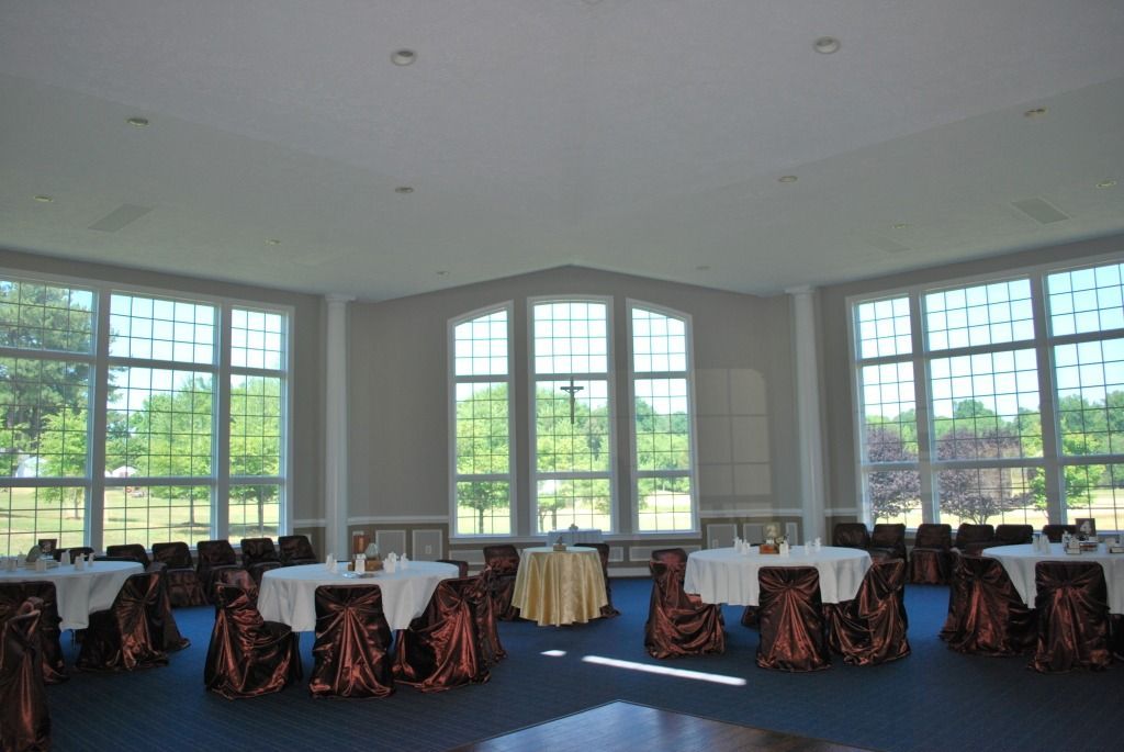The Parish Center offers a modern facility equipped to meet a variety of uses. The striking interior of the Parish Center will provide a beautiful backdrop to any occasion, with floor-to-ceiling windows and clerestory windows of the cupola that bathe the Great Room's 3600 sq. ft. in natural light. Other amenities include a commercial kitchen, a parquet dance floor, sound system, coatroom, and multi-stall restrooms.